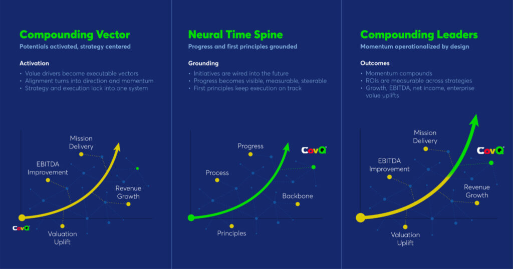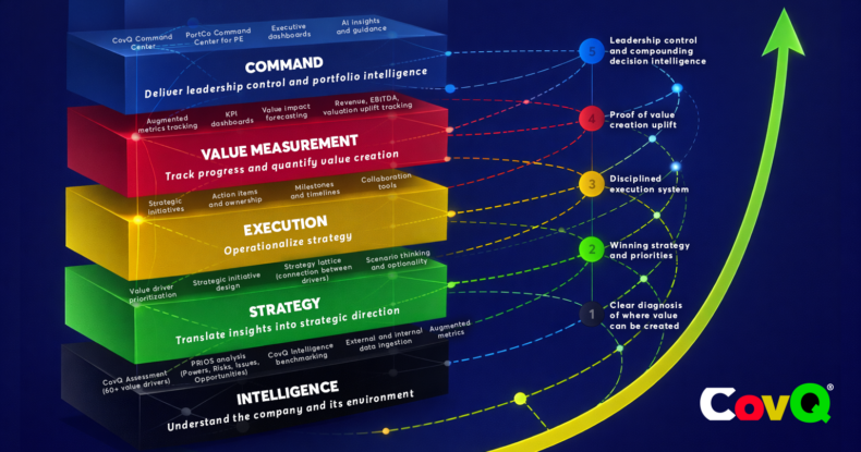 Artificial intelligence plays an important but clearly defined role. It enhances analysis, supports decision-making, and improves execution, but it does not define the structure within which value is created. The Value Creation Intelligence System, as part of the CovQ Value Creation Management Platform, provides that structure by connecting insight, strategy, execution, and outcomes into a coherent whole, with the neural network ensuring that relationships between value drivers, actions, and outcomes are continuously refined. Within this framework, AI strengthens each layer, while without it, AI remains fragmented across tools and use cases. The system is designed to integrate AI where it adds value and to operate with standalone AI capabilities where required, without breaking the integrity of the overall architecture. Efficiency gains alone, however, have natural limits, as there is only so much cost that can be reduced before it constrains the business itself. When AI is applied within a value creation system, the focus shifts from efficiency to growth, where the potential is not bounded in the same way and can expand continuously when activated.